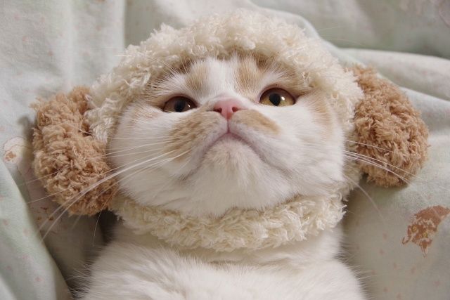 犬の耳をかぶって座っている「ホイちゃん」