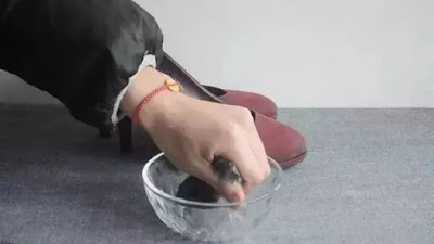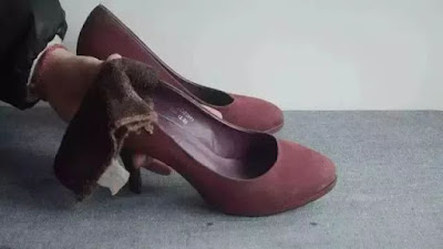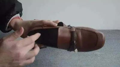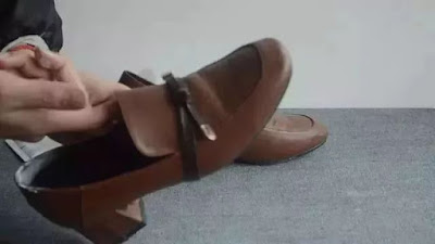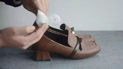 最後に布を靴の足の所に包んで、燕尾挟みで挟み、同じように一晩置いておく。翌日、目が覚めてから靴を履くときは足が混んでいません。