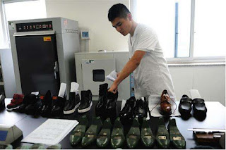 第10に、二つの靴を対比して、上記の各方面で検査をした後、2本の靴の長さ、高低、形状は、一致したり対称であり、光や色が一致するかどうかを見なければならない。