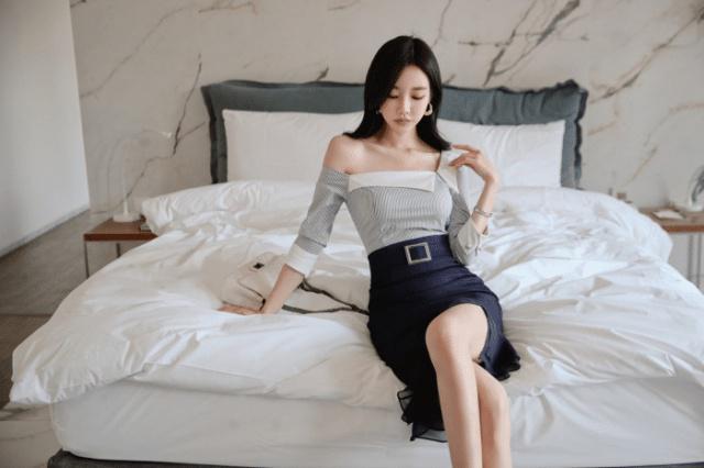 実は沈月さんは私達が知っている背の低いスターです。比べてみると、左はゆったりしていて、腰には何の飾りもないので、このように隠しています。逆に右側のコーディネートを見てもいいです。腰だけでなく、足の高さも違っています。このように視覚的にはもっと高く見えますよ。軽くてゆるくて大きな足になります。美し