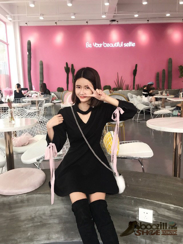 これは小さな黒いドレスは簡単で、見るのが簡単なように見えます。首の設計は複雑ではありません。首のデザインのペンダントを着るのが好きです。それはセクシーな風、ピンクリボンカフ、ベレー帽、コートと二重高靴、様々な出来事に適している。