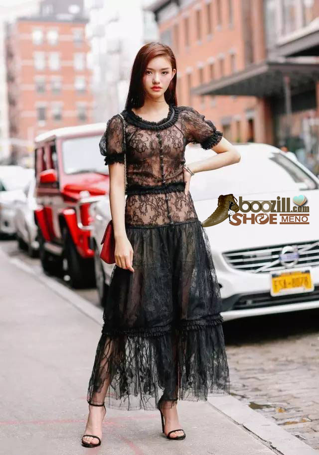 の中でロング+黒いハイヒール着こなし控えめはエレガントな気質ボム、韓式スタイルの感じ